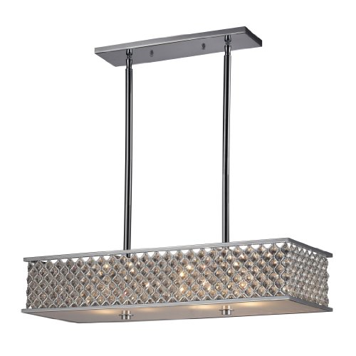 Elk Lighting 31104/4 Genevieve Four Light Island, Polished Chrome?This series offers a brilliant display of shimmering crystal with upscale aesthetics. High quality polished crystal laced into a lattice patterned Polished Chrome metal band, creating a stunning interplay of light and texture. The design is further enriched by a frosted glass diffuser and crystal finial.
