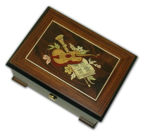 Simple Musical Inlaid Wooden 36 Note Music Box Made In Italy
