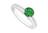 | ✚✚✚ Emerald and Diamond Engagement Ring : 14K White Gold - 0.50 CT TGW Size 14.5 A brilliant-cut round emerald is prong-set in the center and is accented by smaller round diamonds are channel-set on both sides. Made in polished 14K white gold this diamond engagement ring has a total gem weight (TGW) of 0.50 carat and also available matching wedding band model no.W3018BW14D...Please note: Normal shipping time is for the average ring size (Women - size 6, Men - size 10). If you order a different size, the ring will be custom made to that size and will take longer for shipping.......Please note: Normal shipping time is for the average ring size (Women - size 6, Men - size 10). If you order a different size, the ring will be custom made to that size and will take longer for shipping...