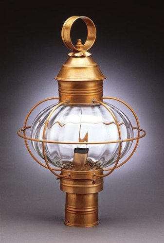 #Northeast Lantern 2543 This lighting fixture is hand made in New Hampshire from 100% brass or copper materials. Includes a lifetime guarantee, except for glass. UL Listed. The all natural finish that will not peel or flake off. Features: -Post Lantern. -Onion collection. -Available in multiple finishes. -Available with Clear, Clear Seedy, Frosted, Optic and Optic Seedy glass types. -Solid brass construction. -Carefully cut, soldered, finished and wired by hand. -Crafted with a detachable globe. -Mounting Area: 3" Diameter. -Made in the USA. -Manufacturer provides lifetime guarantee. Specifications: -Accommodates (3) 60W Candelabra base bulbs. -Overall Dimensions: 20" H x 12" W x 12" D. Finish: Raw Copper, Glass Type: Frosted