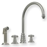 Evolution Double Cross Handle Widespread Kitchen Faucet with Side Spray Finish: Silver PearlWH13664-SPRL Finish: Silver Pearl Features: -Widespread kitchen faucet.-cross style handles.-Contemporary style.-Double cross handles.-Cross style handles.-With fluted side spray.-Gooseneck swivel spout.-Independent single lever mixer.-Solid brass fluted side spray.-8'' Center to center. Construction: -Solid brass construction. Dimensions: -Spout length: 9.5''.-Height: 7.13''. Collection: -Evolution collection.
