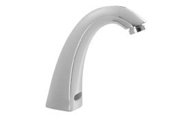 #0.5GPM Battery Operated Motion Activated Single Hole Single Supply Electronic Lavatory Faucet with Hi-Rise Spout Control Box 8" Cover Plate Mechanical Mixing Valve and Vandal Resistant Aerator from the Commercial Series Infrared electronic hand wash system H²OpticsTM technology- no external adjustments required Chrome plated one piece CAST Hi-Rise Synergy® spout with Integral sensor Adjustable sensing range and timeout Audible low battery indicator Single Hole Deckmount Hi-Rise Spout with Integral Sensor Vandal Resistant Recessed Mounted 10" x 10" Box for solenoid, controller and MECHANICAL MIXING VALVE with Thermostatic Limit Stop-REQUIRES HOT AND COLD WATER SUPPLIES